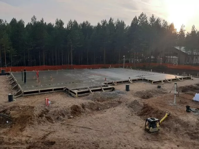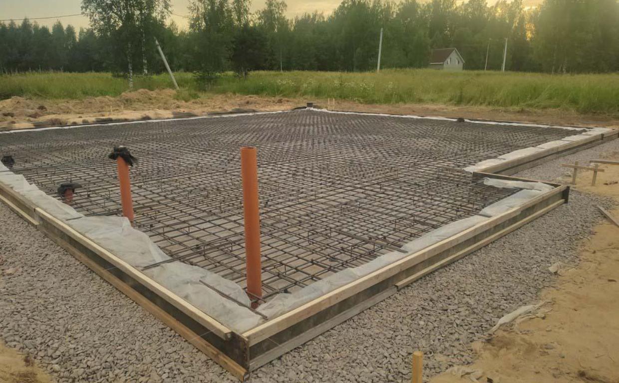 Заказчик попросил залить монолитную плиту 200 мм под дом 85,5 м2 с ростверком вниз