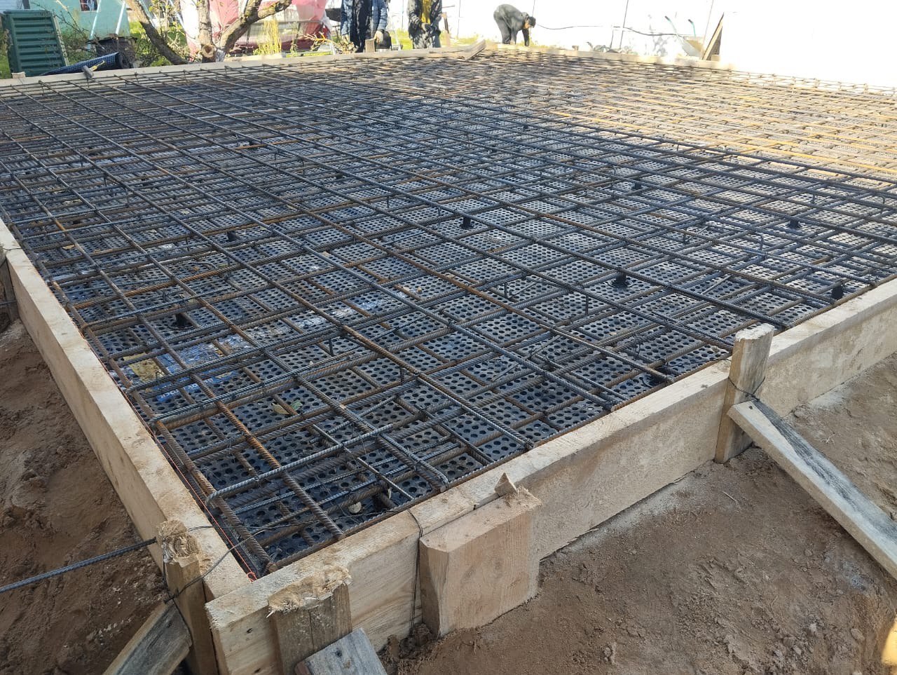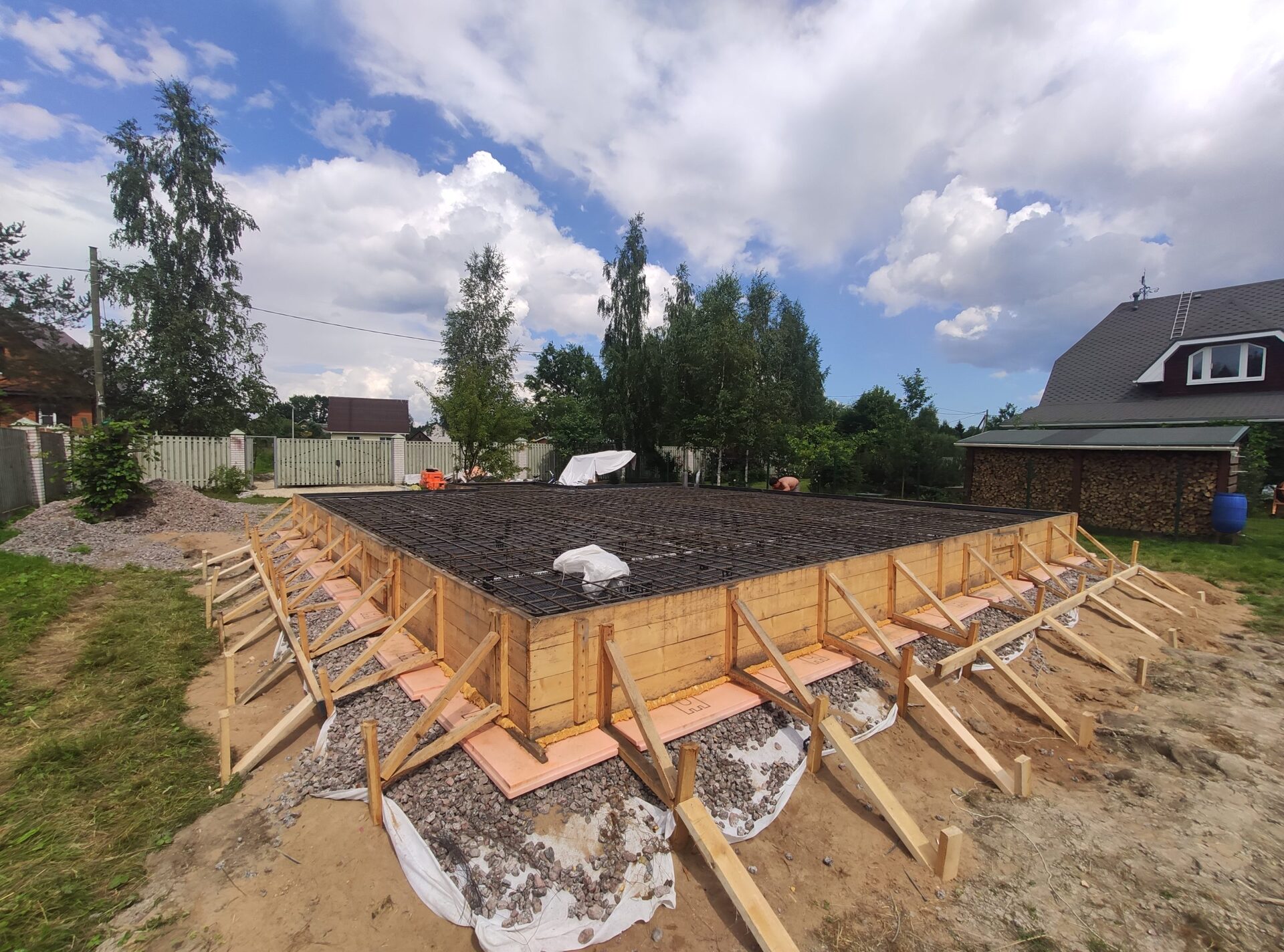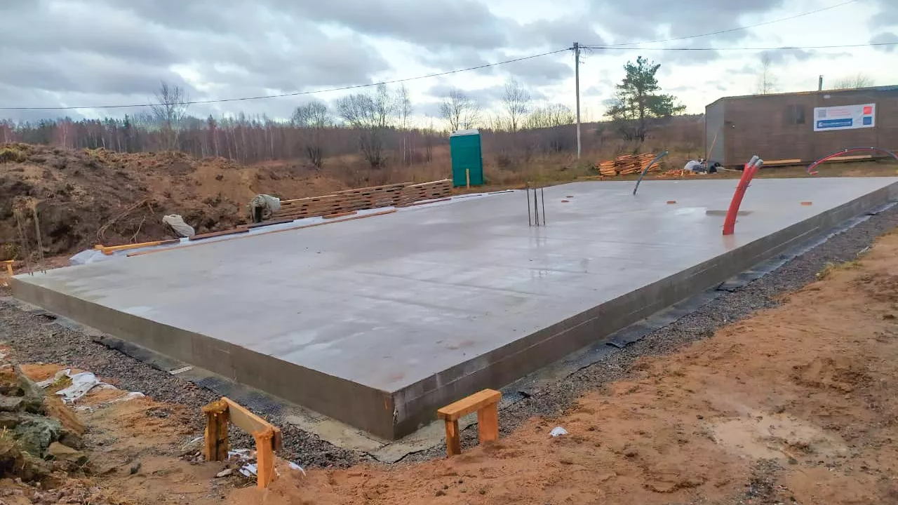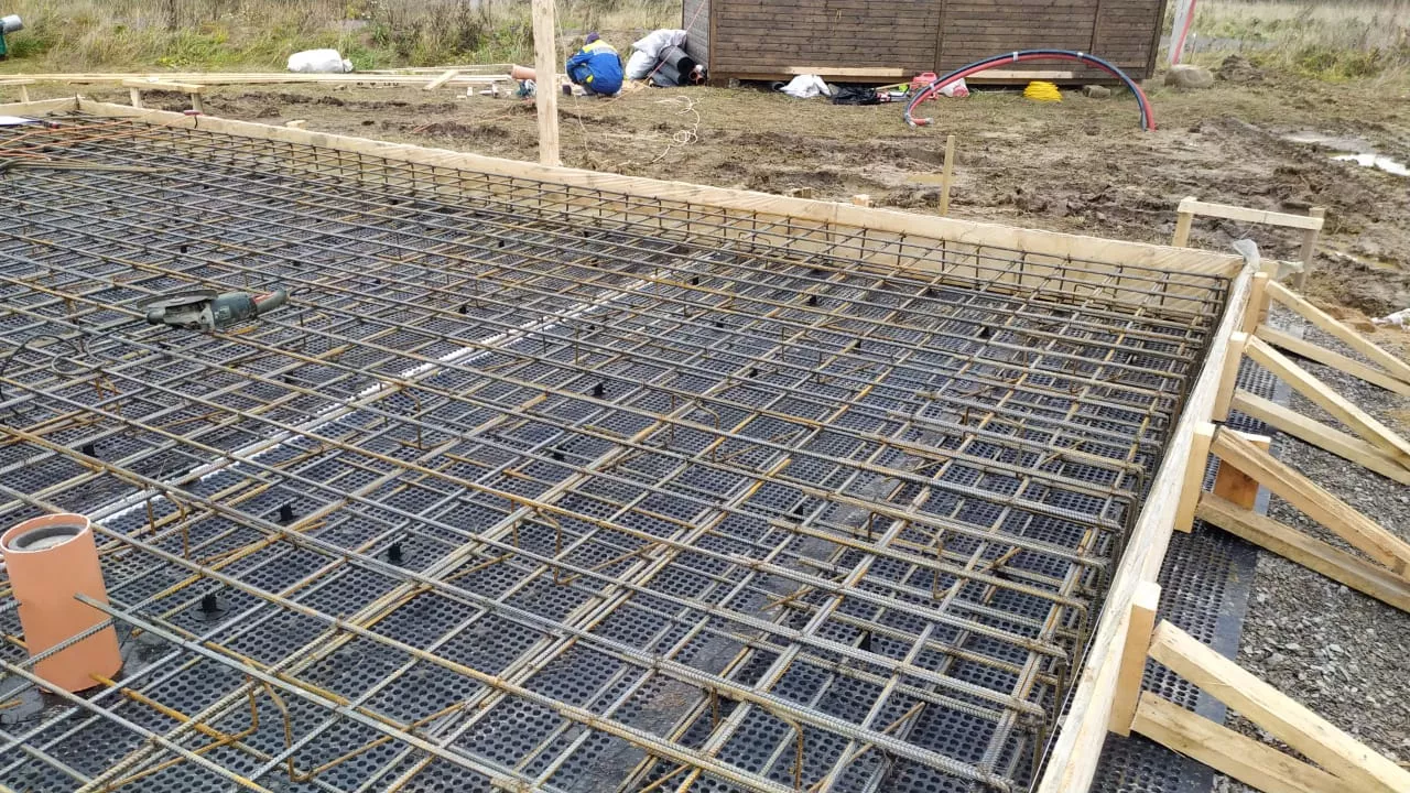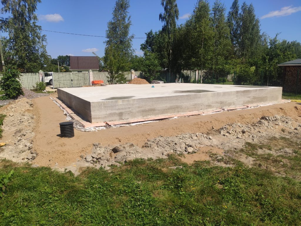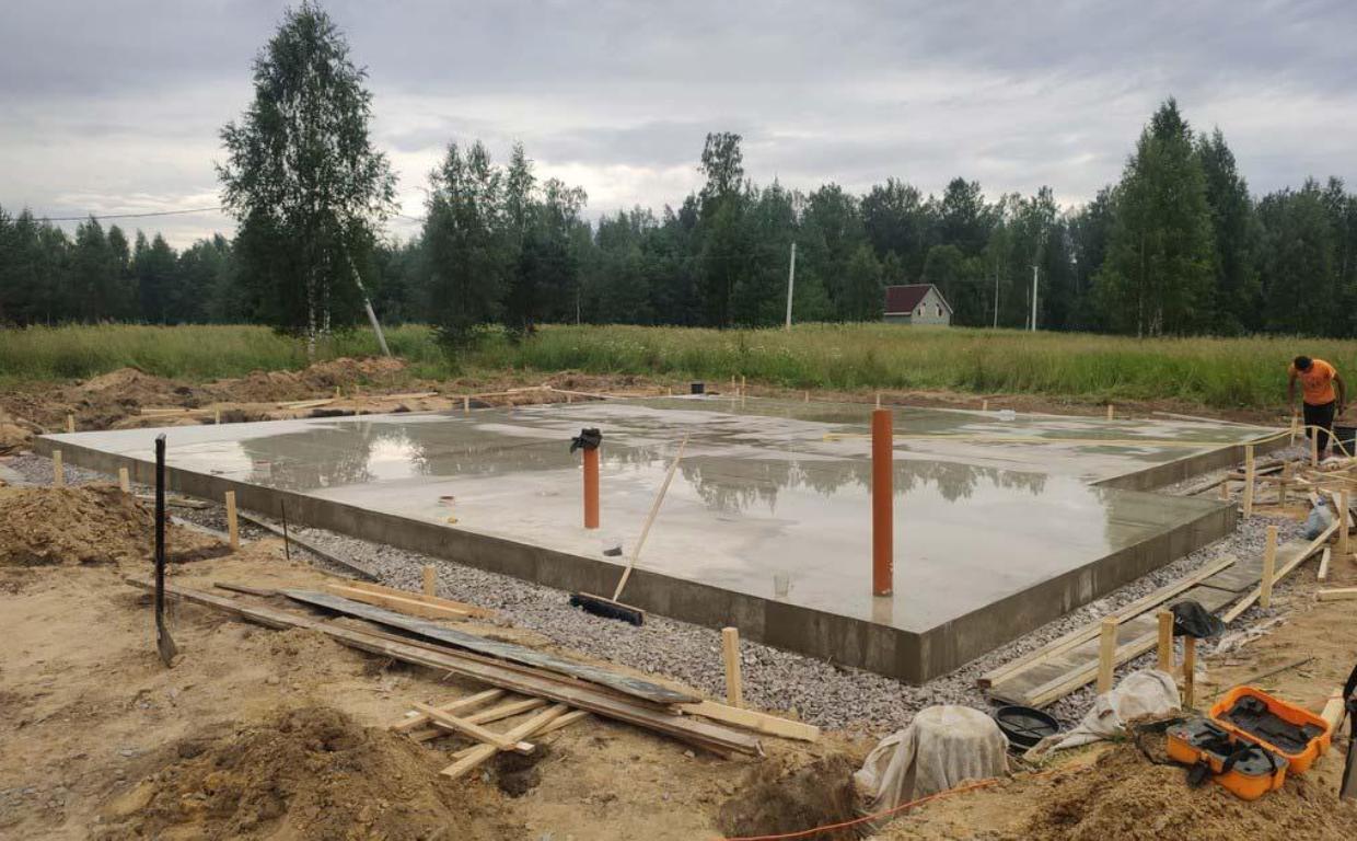 Заказчик попросил залить монолитную плиту 200 мм под дом 85,5 м2 с ростверком вниз